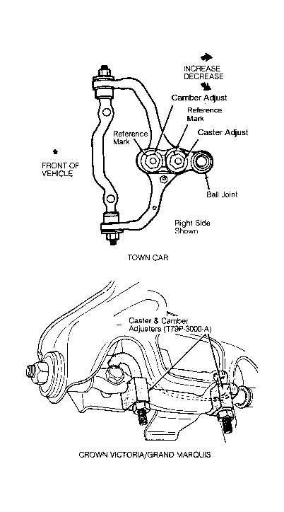 Home >> Ford >> 1993 >> Probe Base, Automatic >> Repair and Diagnosis >> Suspension >> Wheel Alignment >> Wheel Alignment Specifications & Procedures >> Wheel Alignment Procedures >> Camber Adjustment >> Town Car
