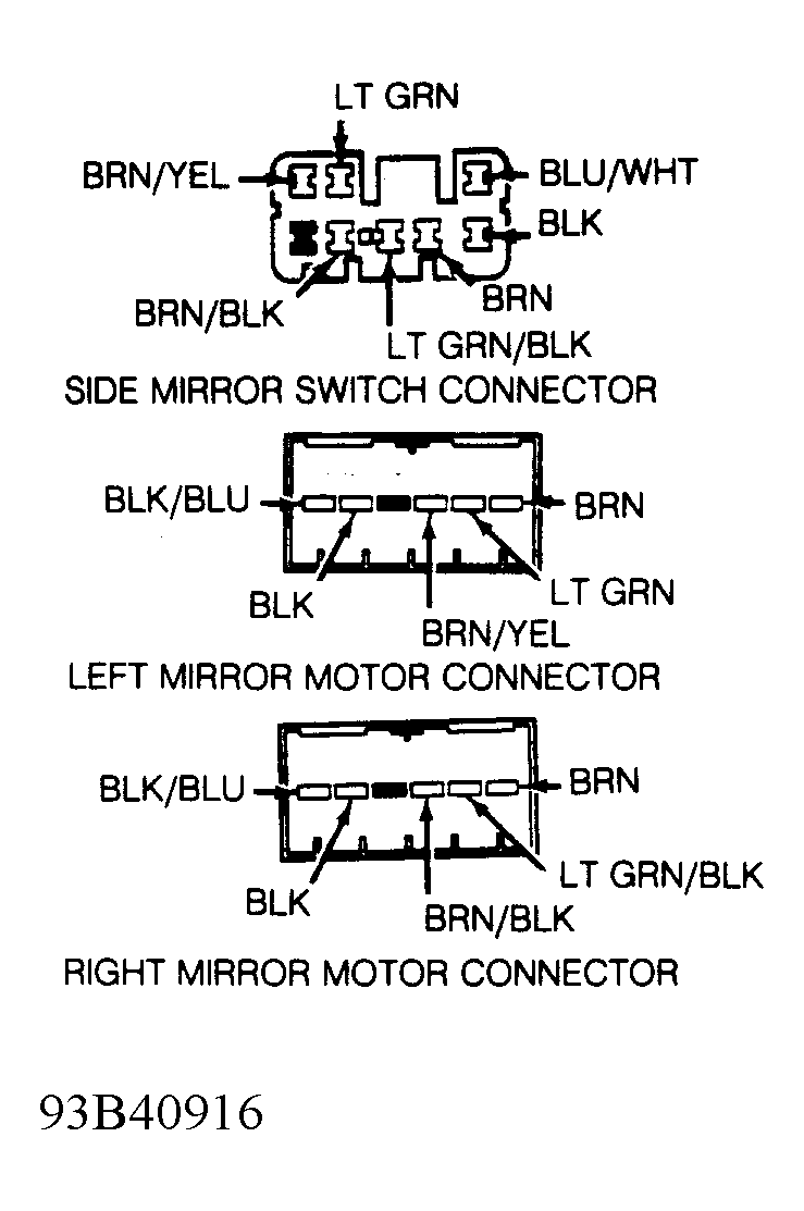 SIDE MIRROR SWITCH TEST (EXCEPT ESCORT, PROBE & TRACER)