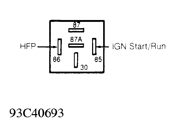 160) Lack Of Power/Hard Start; Check HFP Relay Operation Turn ignition off. Disconnect HFP relay. Relay is located in engine compartment fuse block. Measure voltage between negative battery post and B (+) terminal at HFP relay connector. See Figure . Turn ignition on. Measure voltage between IGN START/RUN terminal at HFP relay connector and negative battery post. If both voltage readings are more than 10.5 volts, go to step 161). If any reading is 10.5 volts or less, repair open in B (+) or IGN START/RUN circuit. Also, ensure all related fuses are good. After repair is completed, reconnect all components. Recheck system operation.