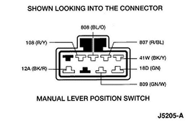 2. With the selector lever in the PARK or NEUTRAL position, there should be continuity between the terminals.