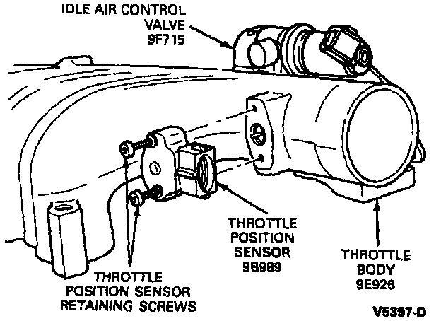 CAUTION: Slide rotary tangs into position over throttle shaft blade, then rotate TP sensor clockwise to installed position only. Failure to install the TP sensor in this manner may result in excessive idle speeds.
