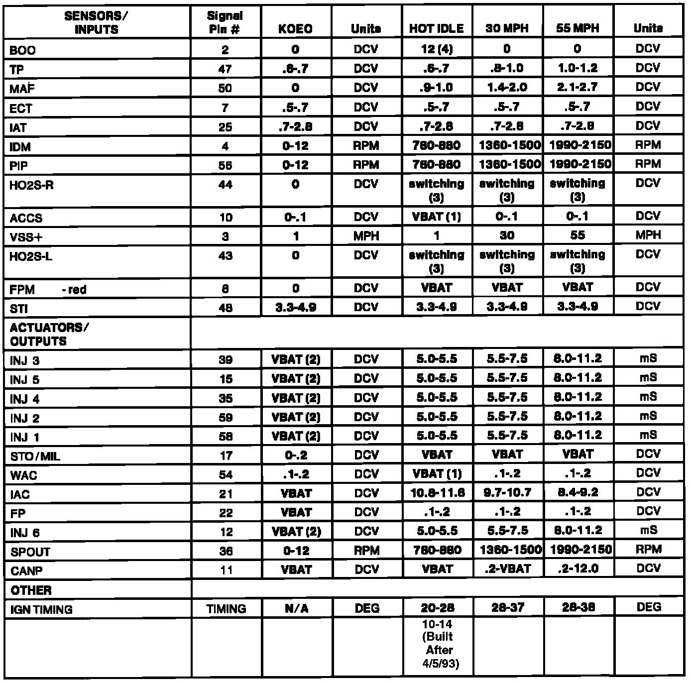 *** Updated by TSB# 9326B46, Dated December, 1993Diagnostic Reference Values: