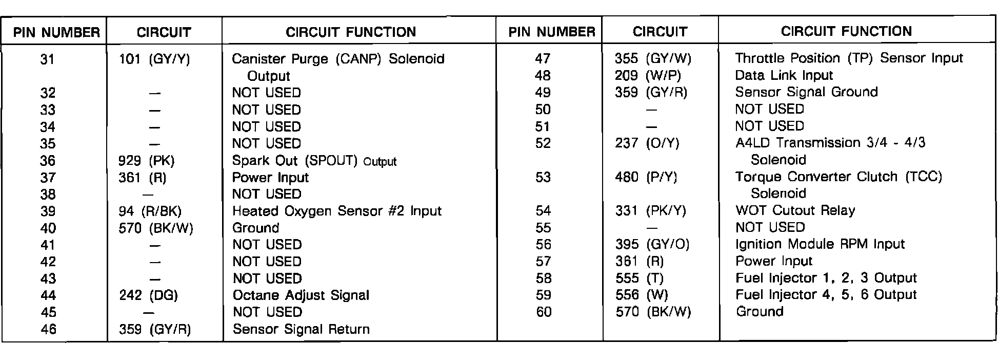 Powertrain Control Module (PCM) Connector Pin Useage: