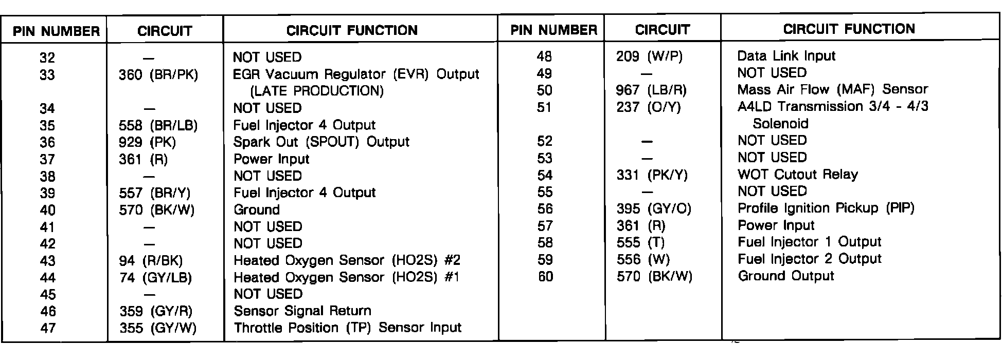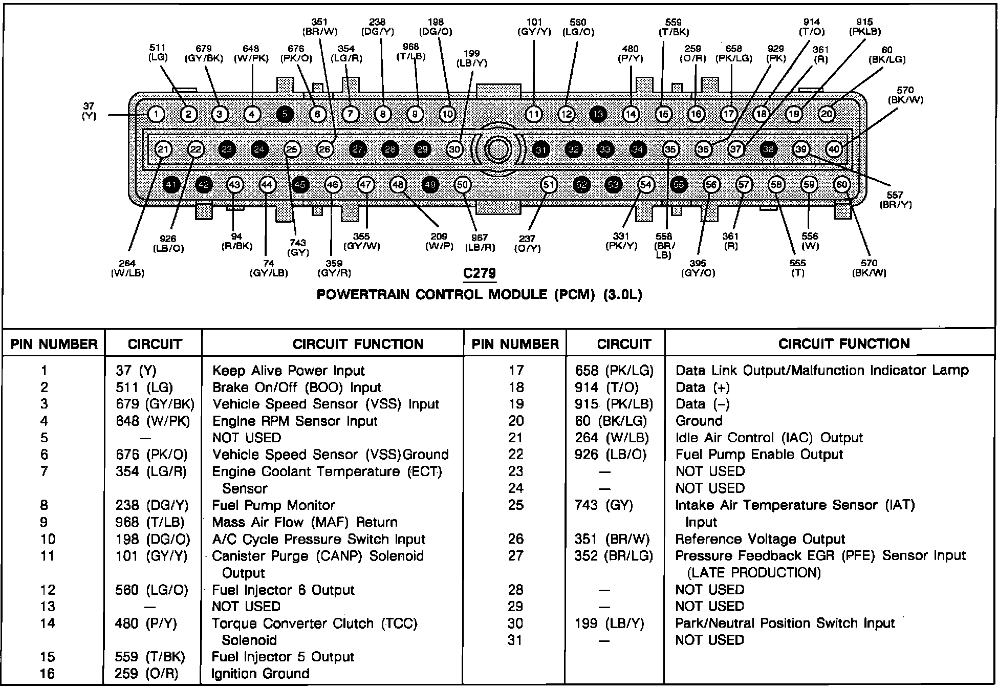 Powertrain Control Module (PCM) Circuit Function 3.0L: