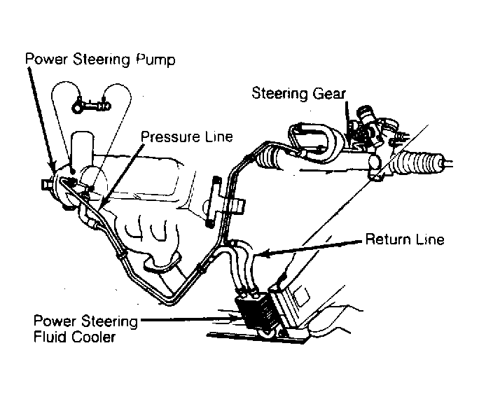 - Reservoir must be kept full and at normal operating temperature during testing. Attach Power Steering System Tester (014-00207) between pressure line and pump with gauge between pump and tester valve. Start engine and let idle for 2 minutes. See Fig 1 .