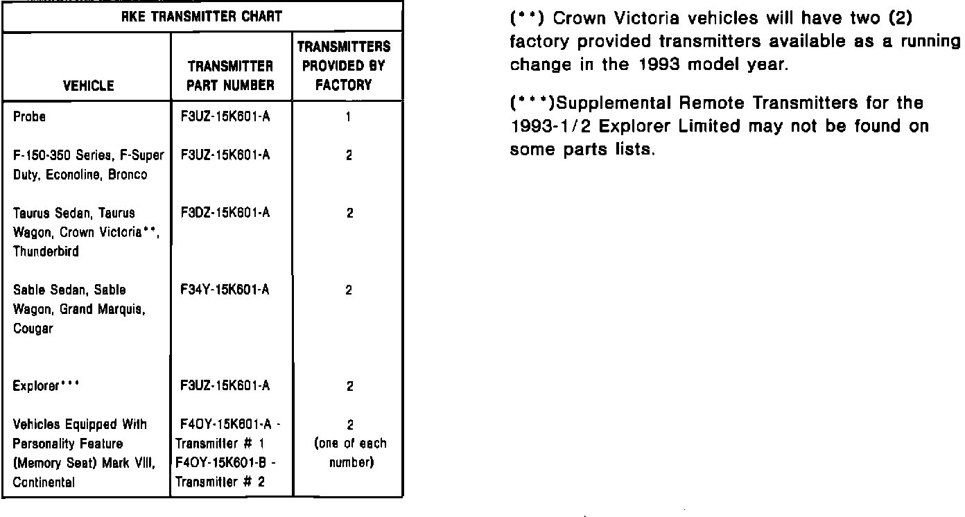 Home >> Ford >> 1993 >> Taurus V6-232 3.8L >> Repair and Diagnosis >> Body and Frame >> Locks >> Keyless Entry >> Technical Service Bulletins >> Remote Keyless Entry System - Service Tips