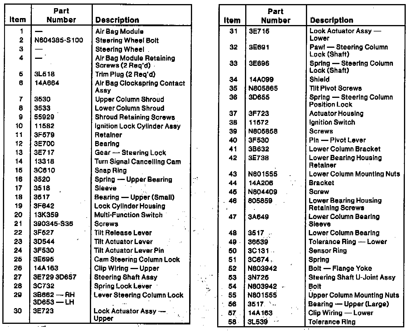 Fig. 7 Exploded View Of Steering Column W/Console Shift: