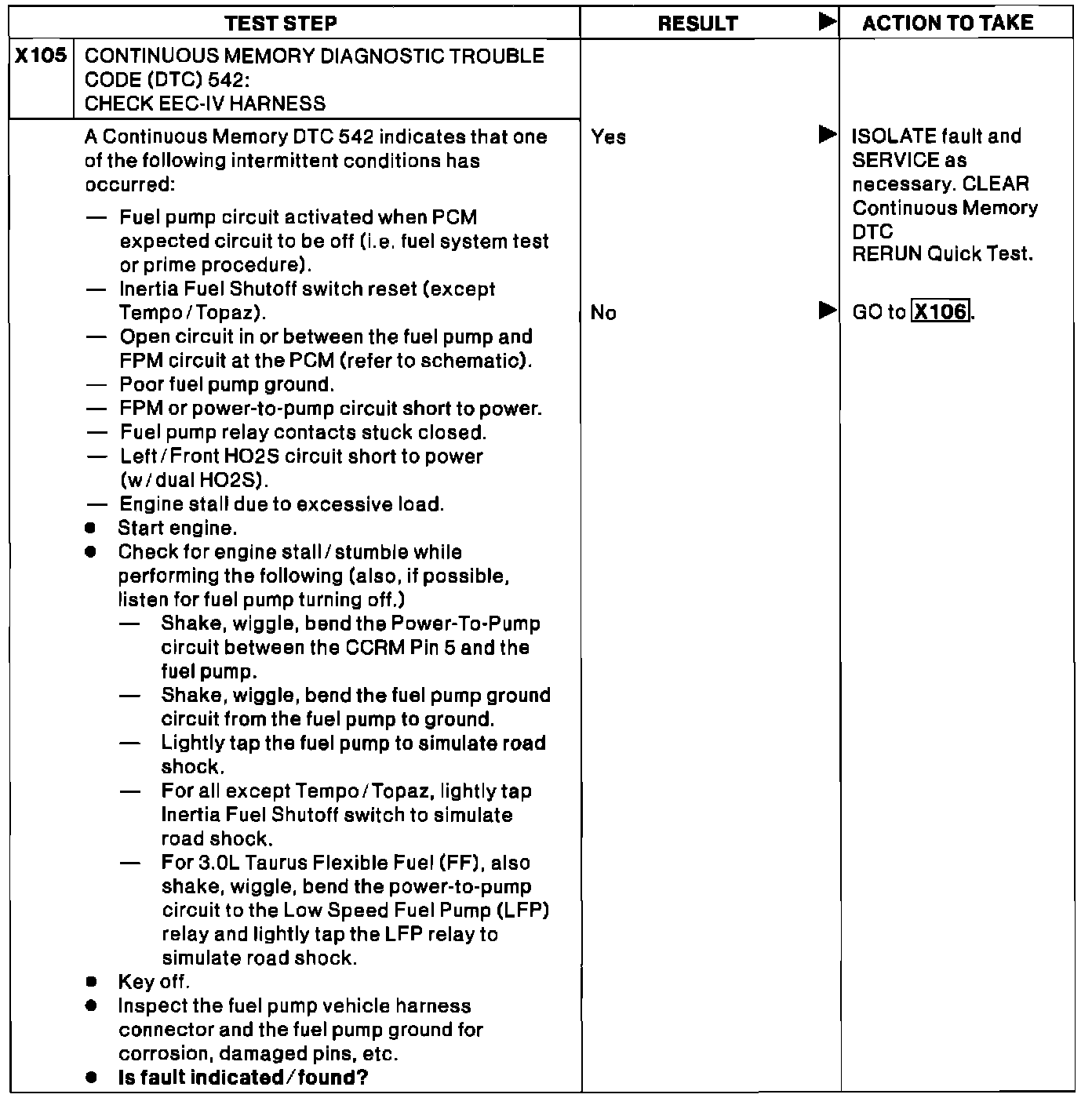 X105 - Continuous Code 542: Check EEC-IV Harness