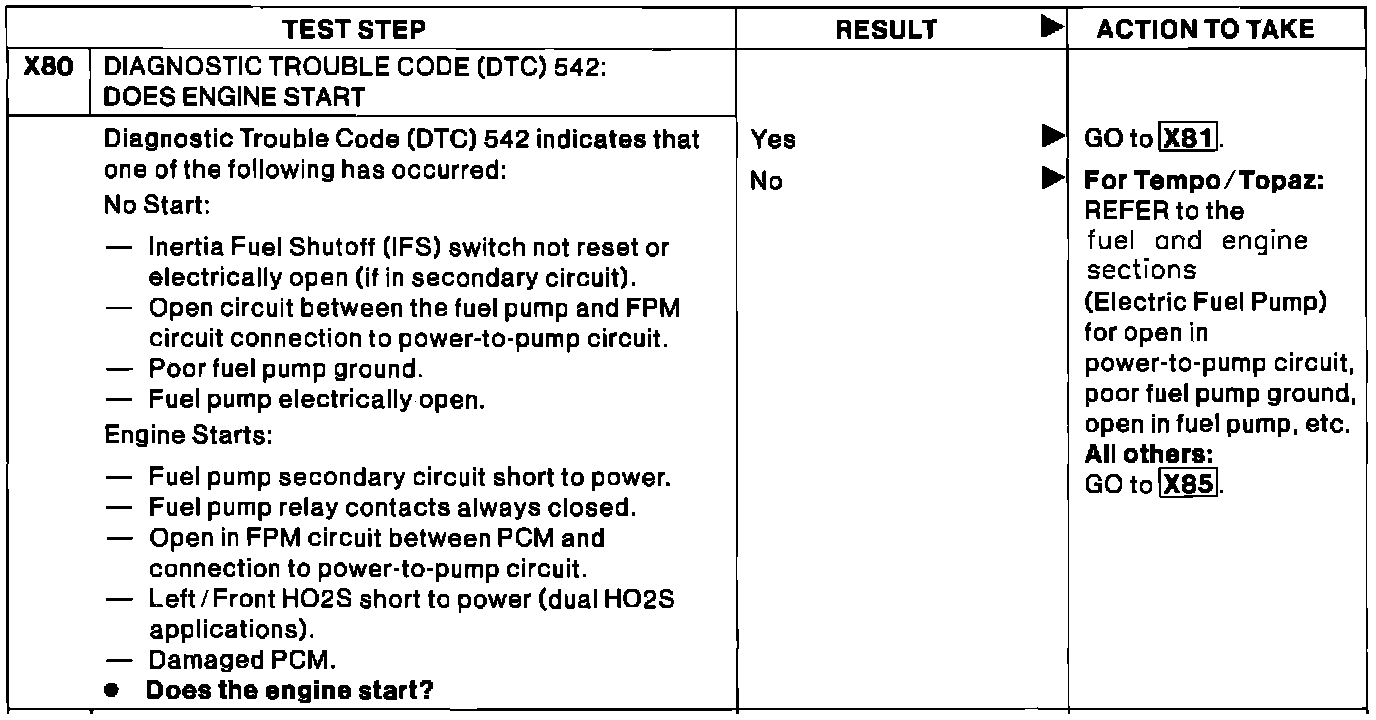 X80 - Code 542: Does Engine Start