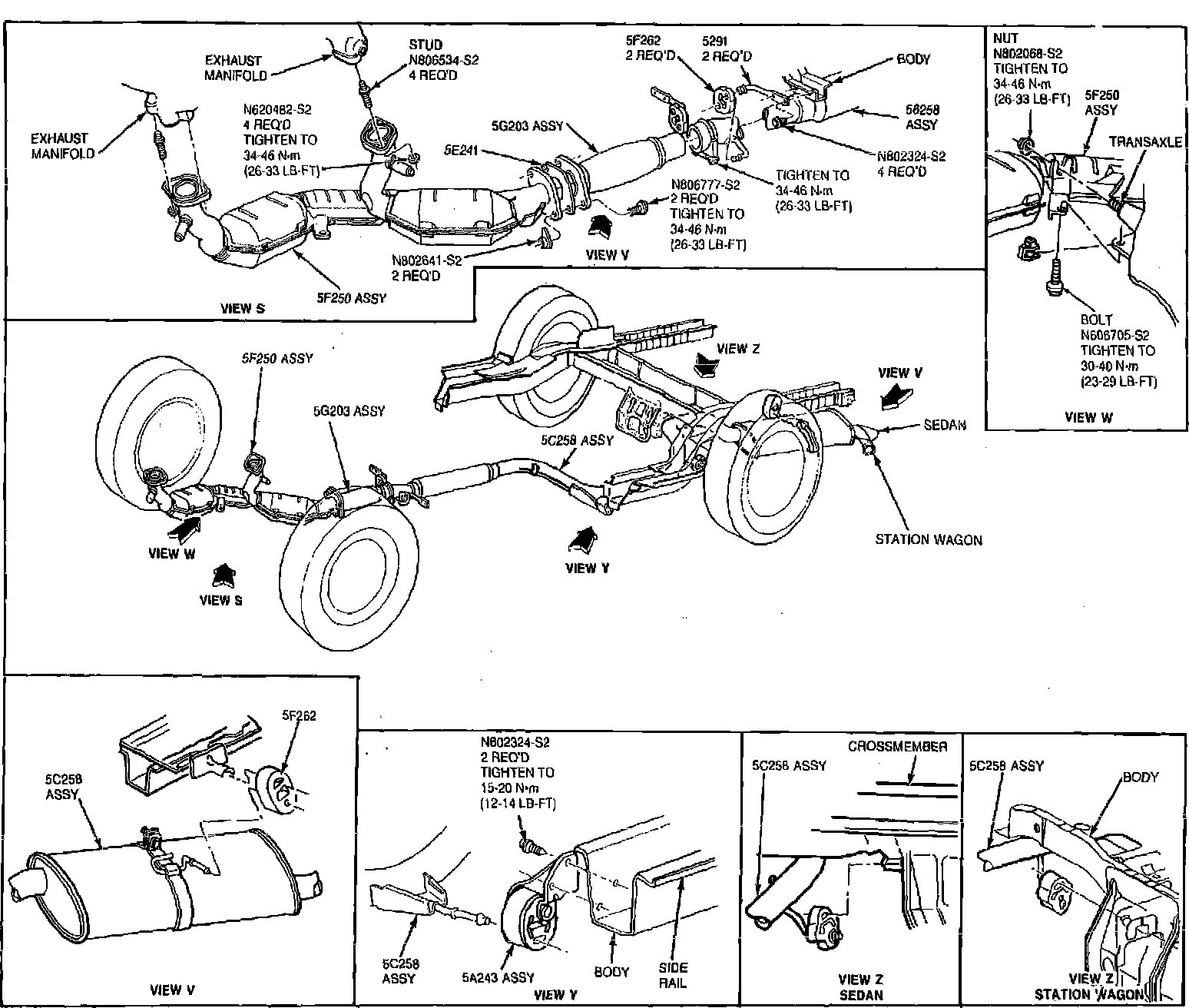 13. Lower the vehicle, START the engine, and check for exhaust leaks.