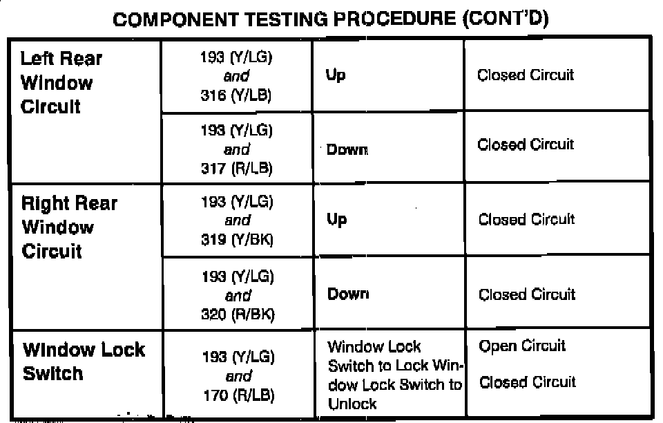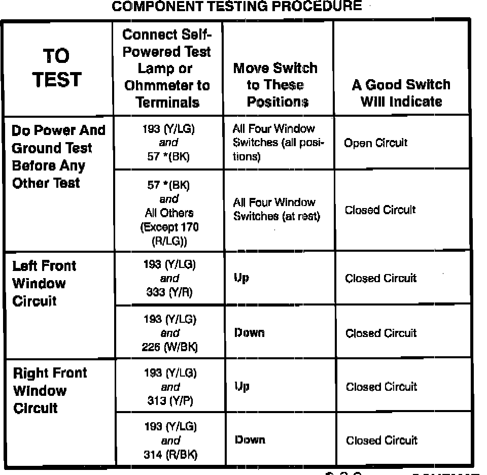 Power Window Switch: Testing and Inspection