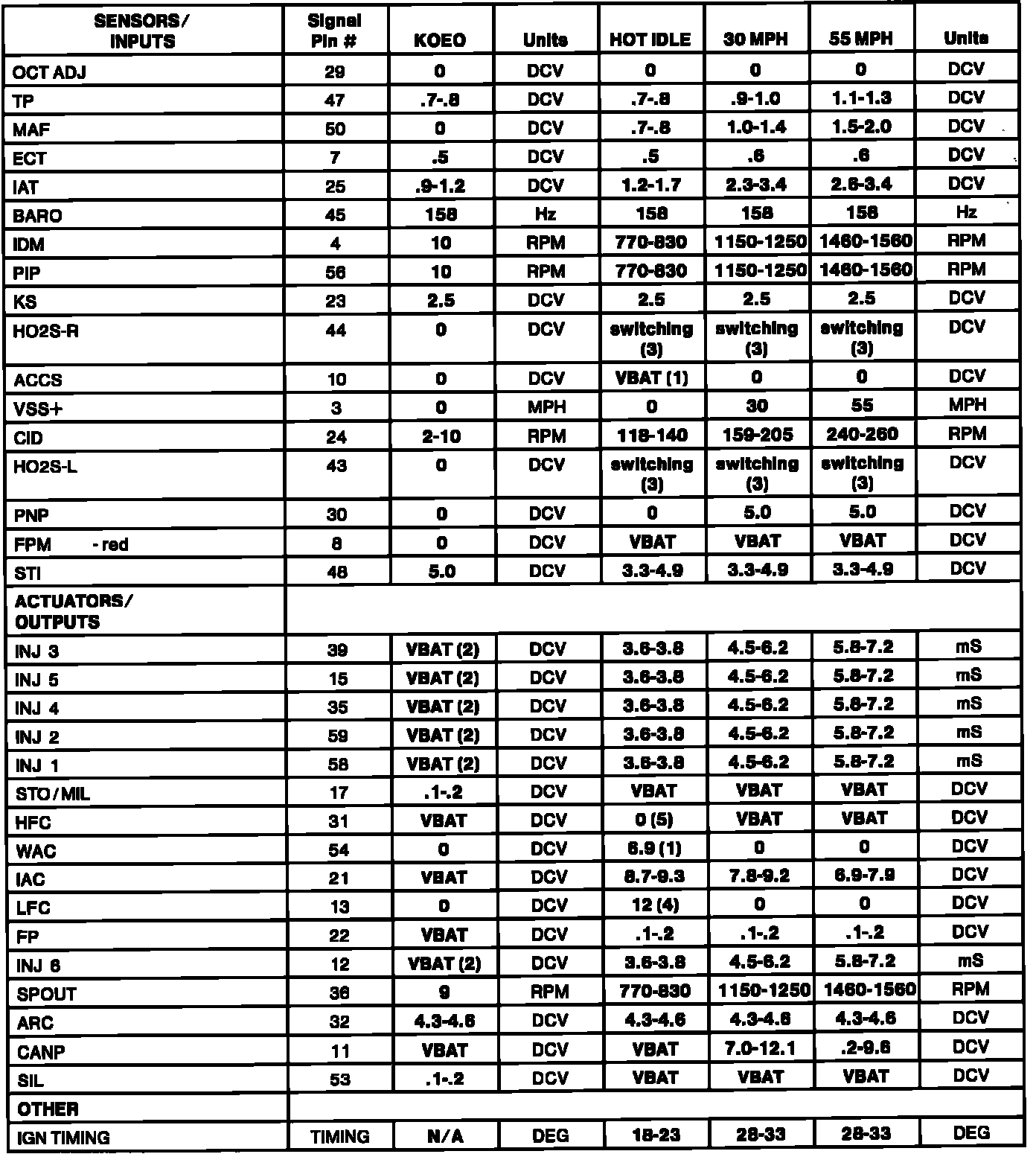 Home >> Ford >> 1993 >> Thunderbird V6-232 3.8L SC >> Repair and Diagnosis >> Specifications >> Electrical Specifications >> Computers and Control Systems >> System Specifications >> Sensor Functional Range Chart >> Automatic Transmission