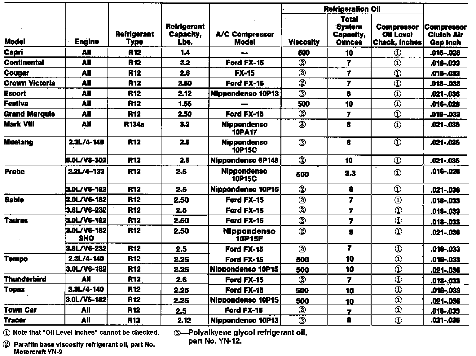 A/C Data Table: