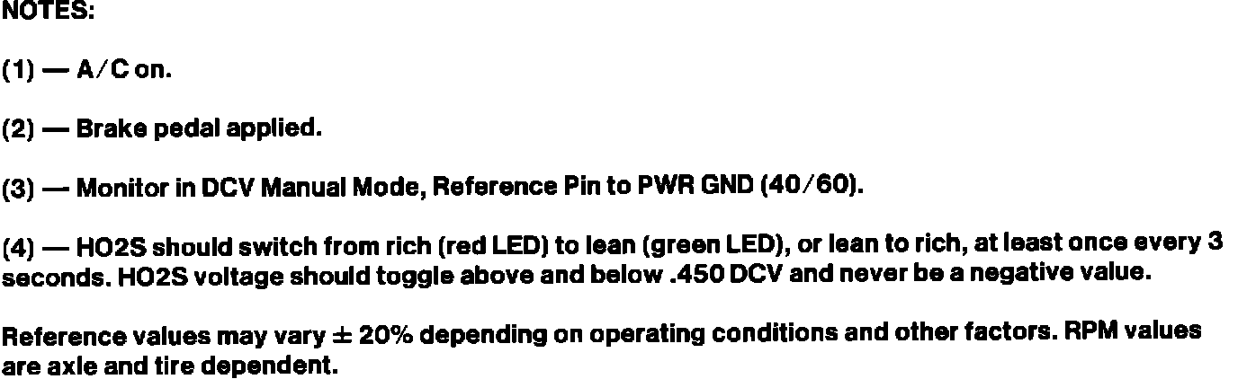 - Key On Engine Off (KOEO) and Hot Idle test values are recorded with vehicle in "PARK".