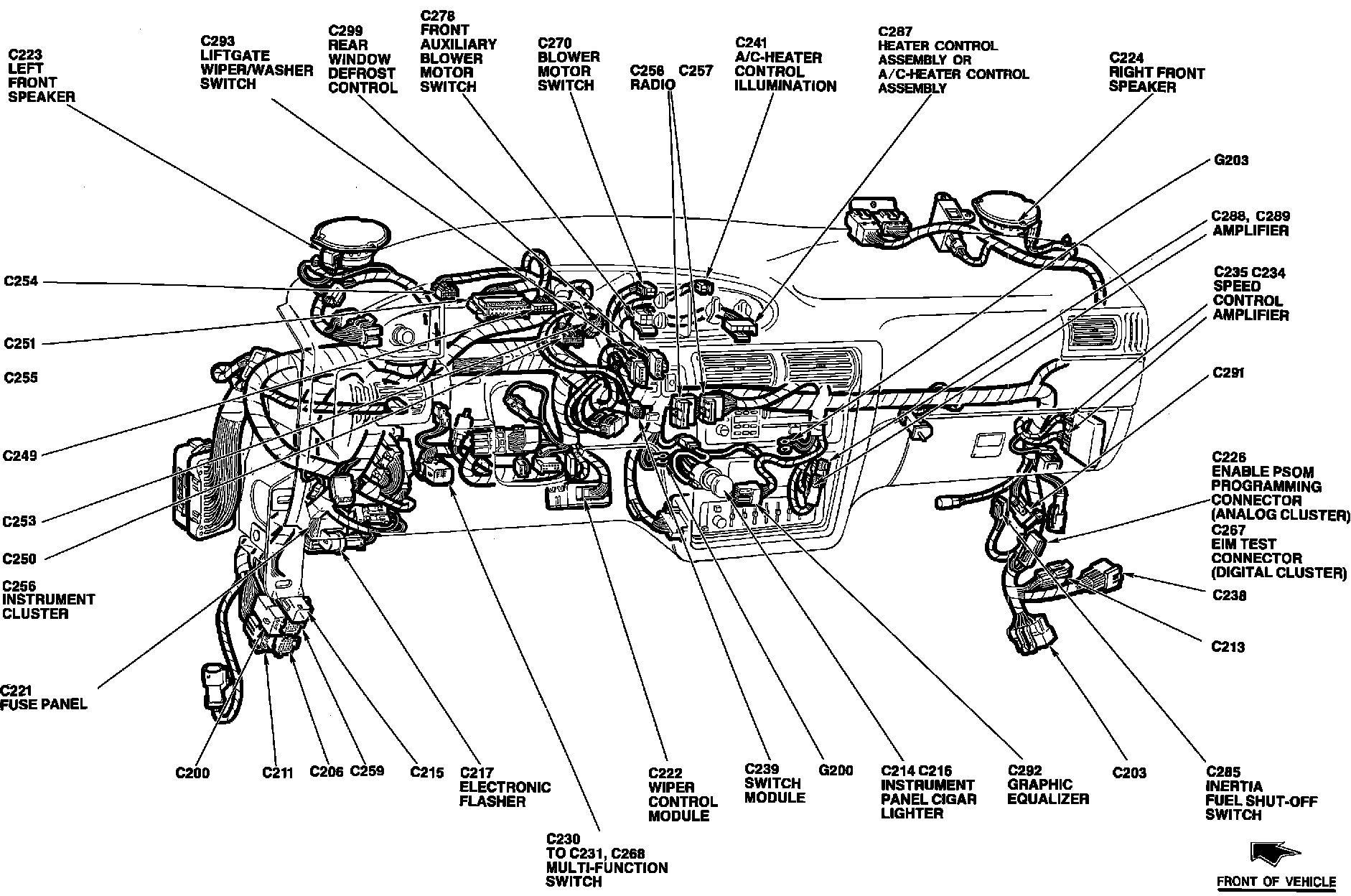 The Wiper Control Module is located behind lower LH side of I/P, right of steering column.