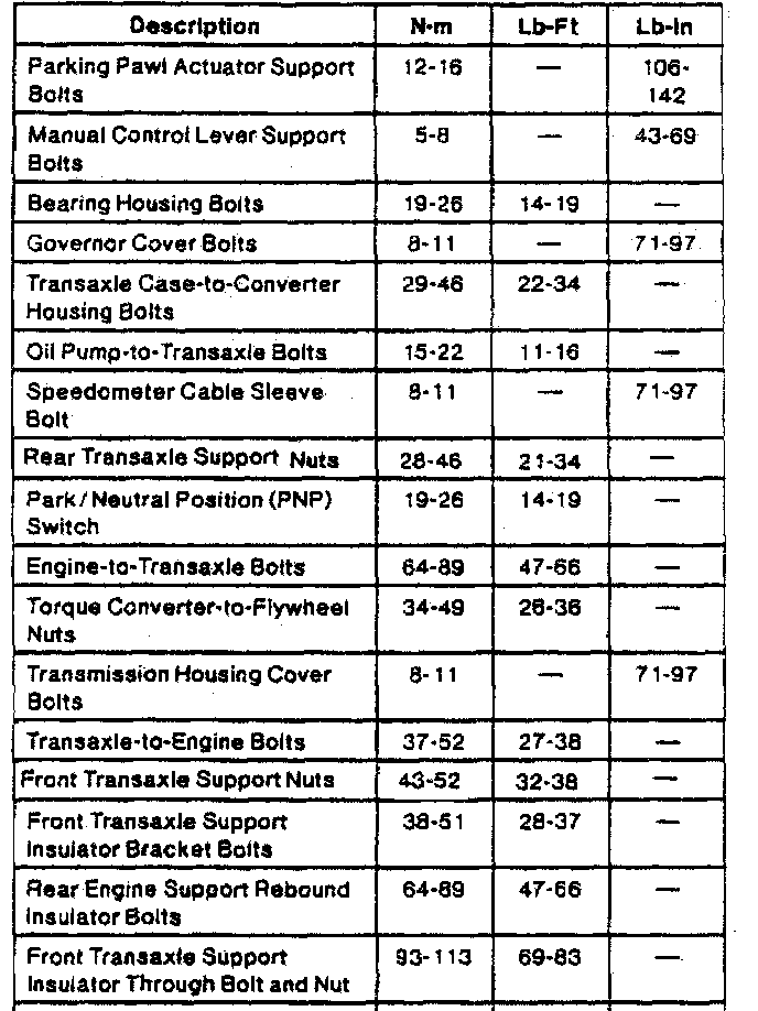 A/T Torque Data