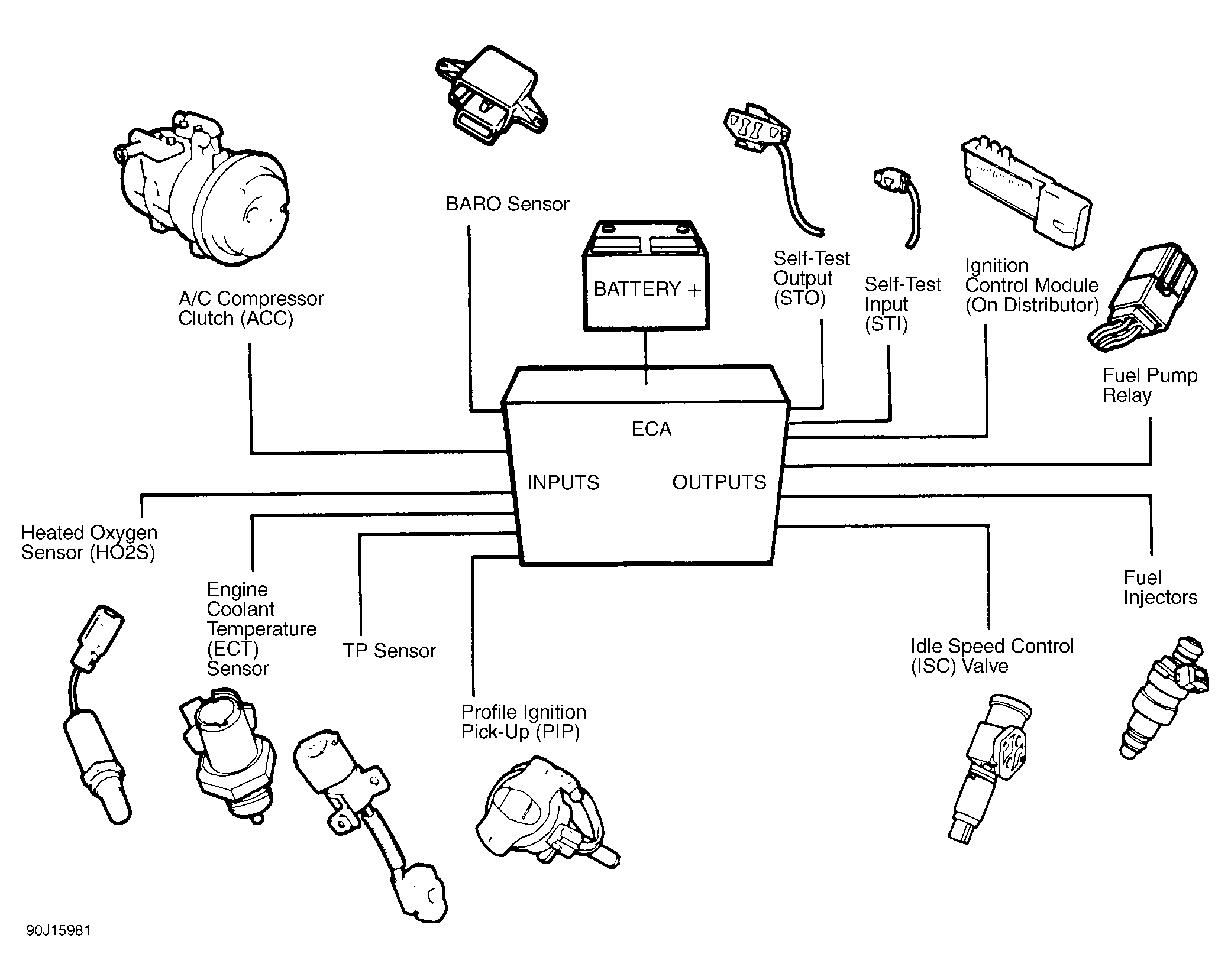 During system operation, PCM transmits electrical reference signals to engine sensors and analyzes return signals to determine engine operating conditions. See Fig 1. If a sensor, circuit or actuator fails, PCM initiates an alternative strategy, allowing vehicle to continue to be driven. This strategy is called Failure Mode Effects Management (FMEM).