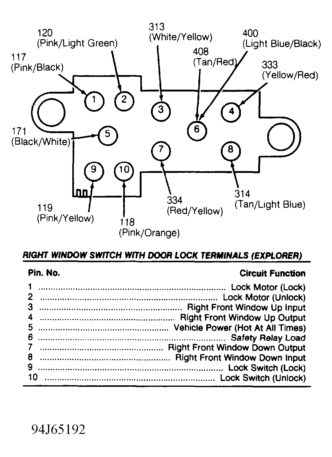RIGHT WINDOW SWITCH WITH DOOR LOCK TERMINALS