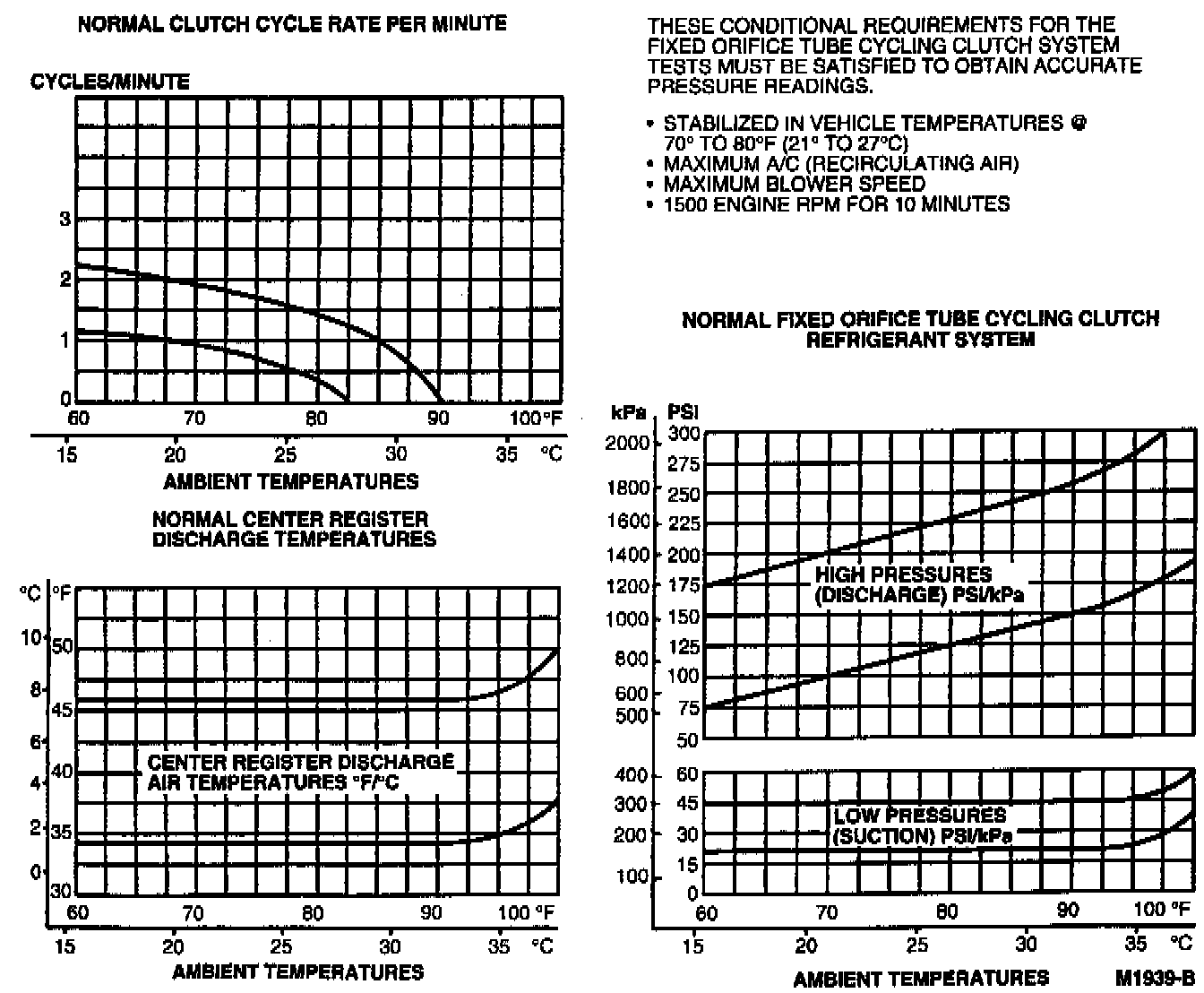 A/C Pressures And Clutch Cycle Time Operation Chart: