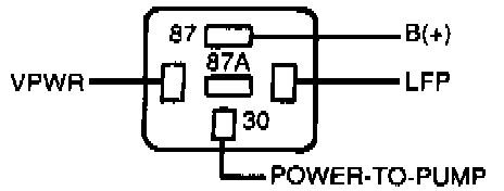 - Check LFP relay for internal shorts: Measure resistance between the LFP pin and both the power-to-pump and B(+) pins. Both resistances should be greater than 10,000 ohms.