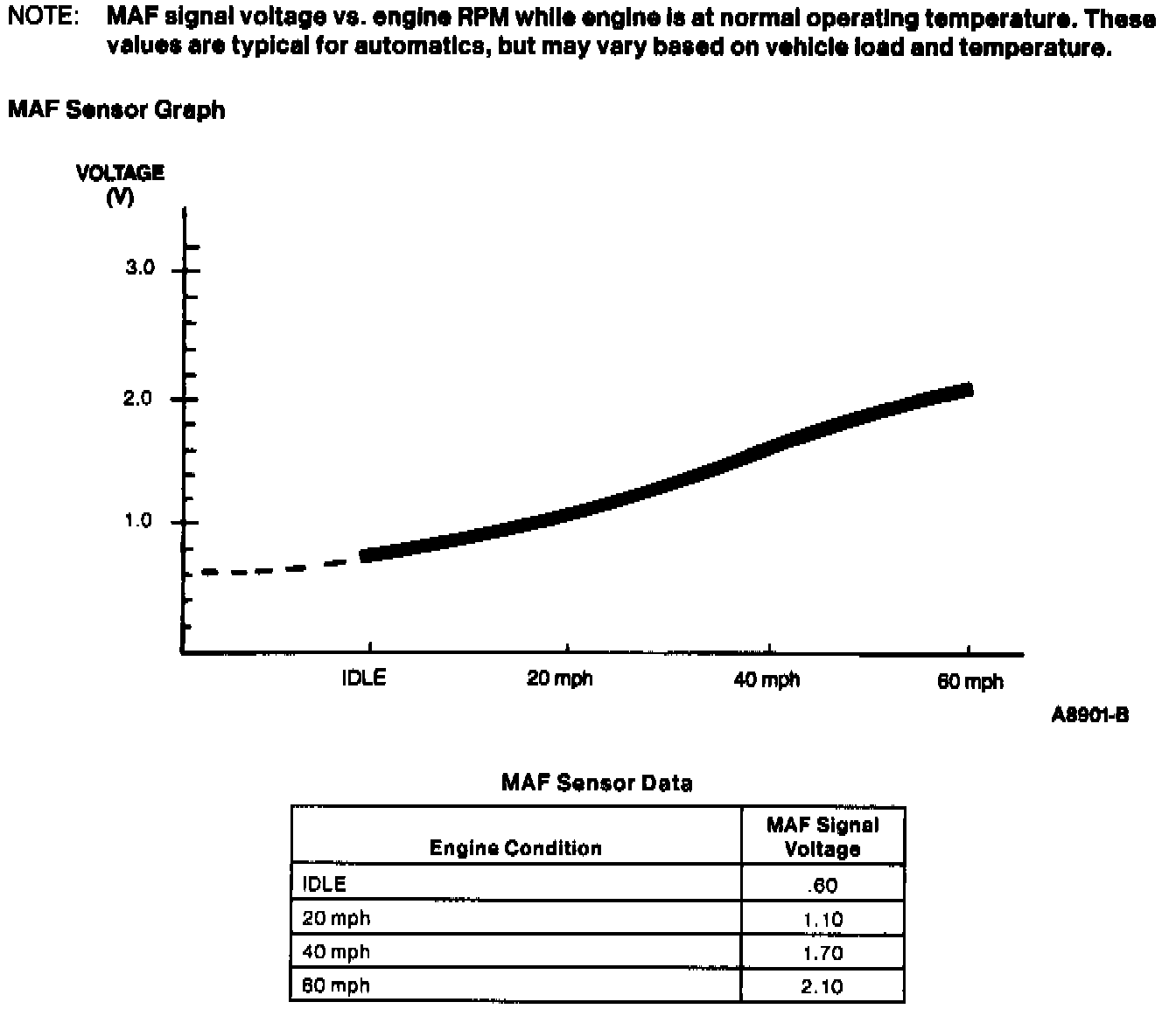 Mass Air Flow Meter Signal Voltage Sensor Data: