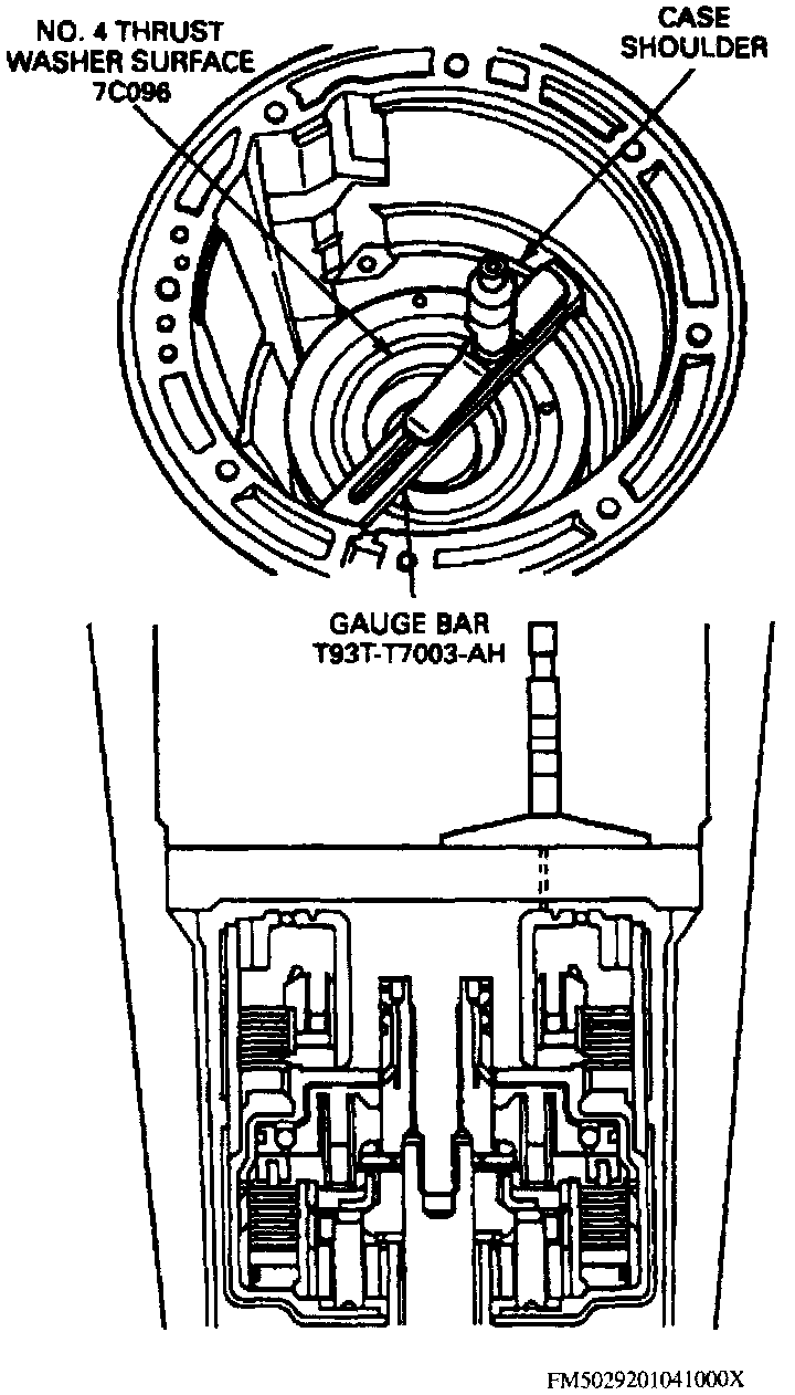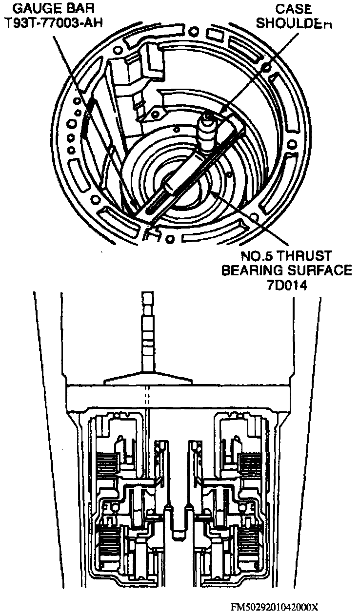 2. Extend probe until it contacts No. 5 thrust bearing surface at forward clutch.