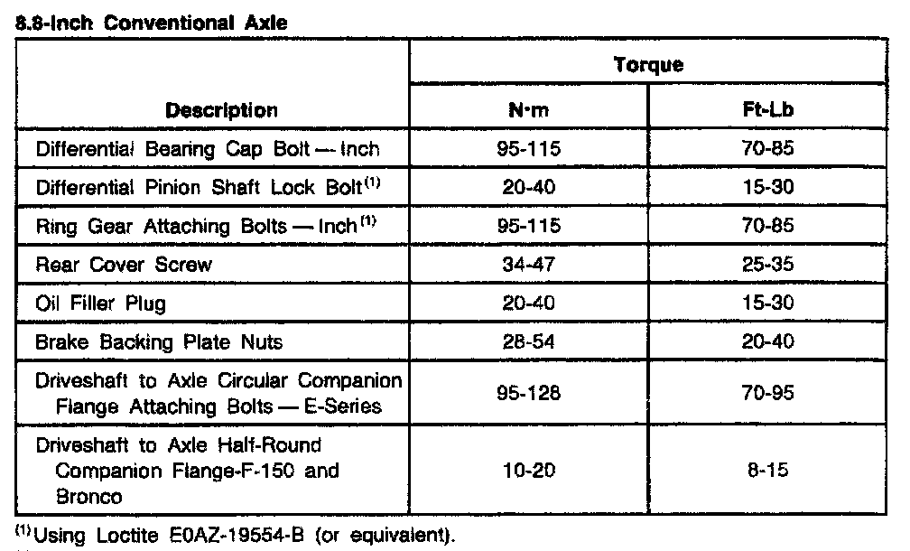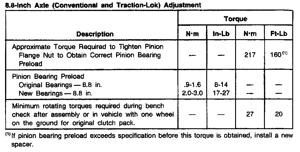 Ford 8.8 Inch/Trac Lok, Pinion Preload Torque: