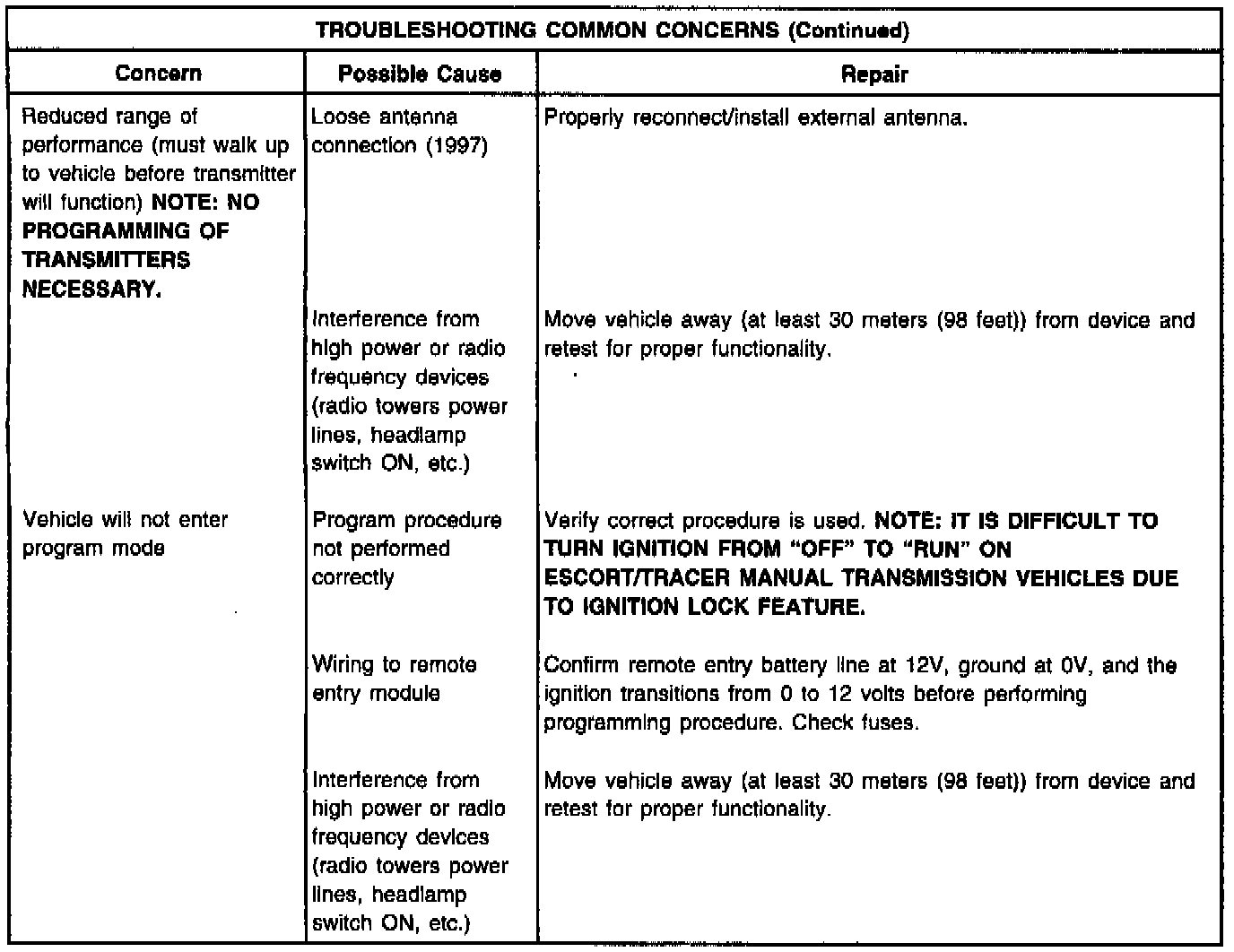 Home >> Ford >> 1994 >> Explorer 2WD V6-245 4.0L >> Repair and Diagnosis >> Technical Service Bulletins >> All Technical Service Bulletins >> Remote Keyless Entry - Diagnostic Service Tips >> Reference Procedure Steps For RKE Programming