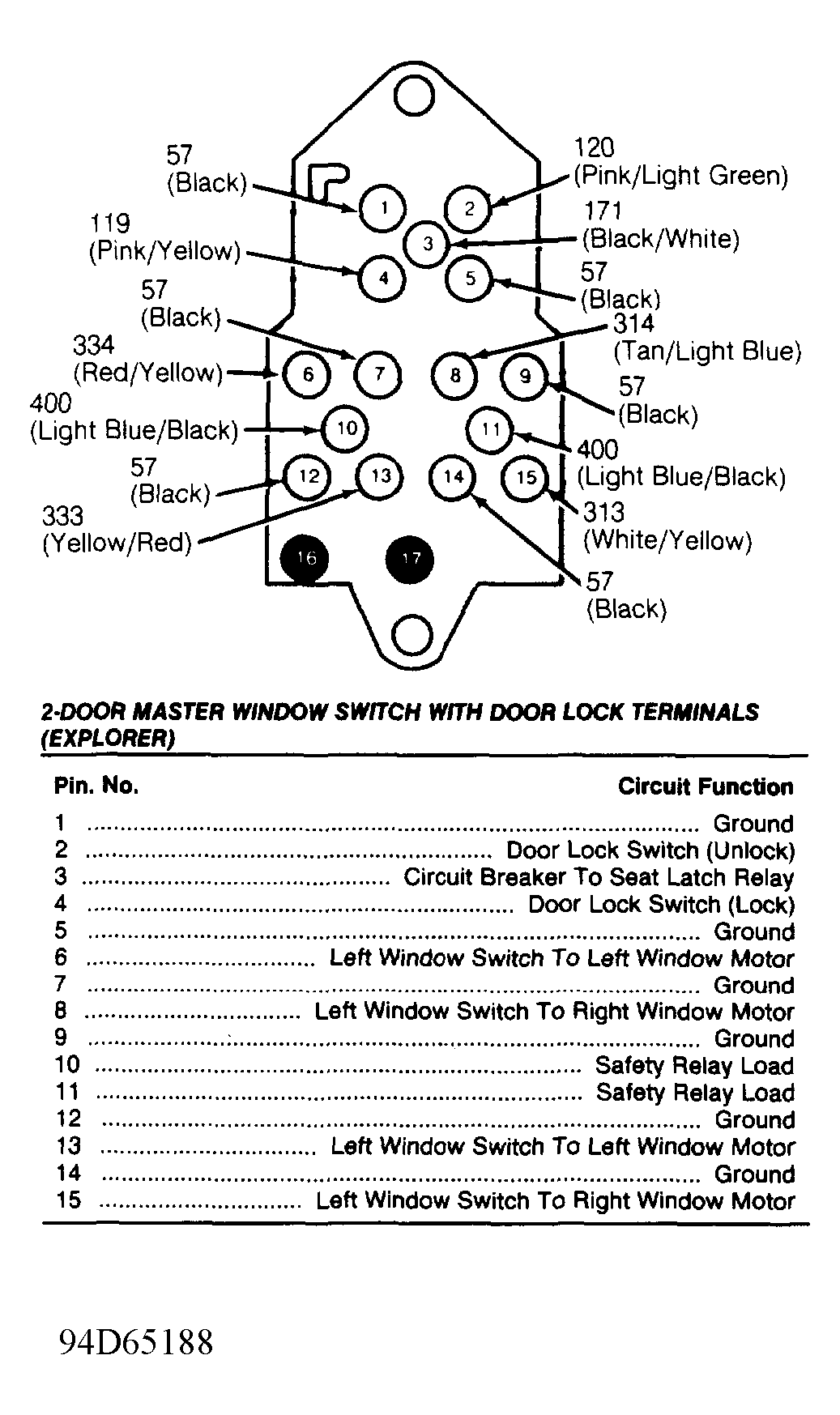 Testing information is not available from manufacturer. See illustration for 2-door master window switch with door lock terminal locations. See Fig 1 .