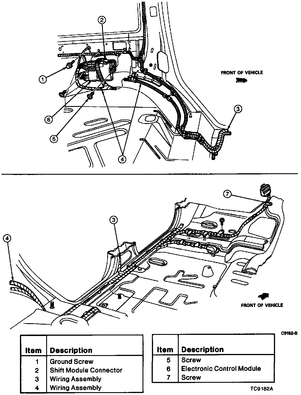 The Electronic Shift Control Module is located at the rear of vehicle, over the left wheel well.