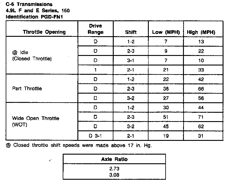 C6 3-spd A/T, Shift Speeds 4.9L E/F Series, 150):