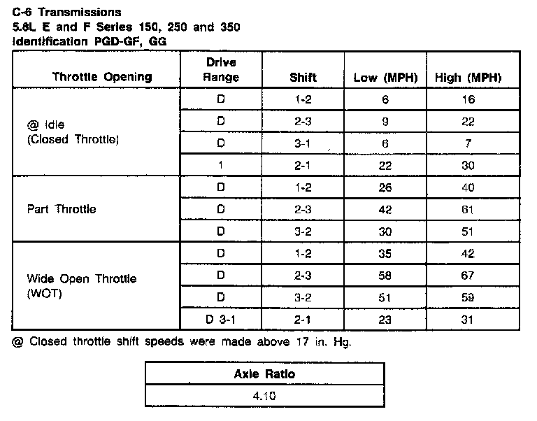C6 3-spd A/T, Shift Speeds (5.8L F-150, E-150, Bronco):