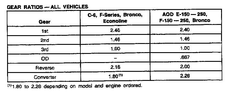 C6 3-spd A/T, Gear Ratios (F-Series, Bronco, Econoline):