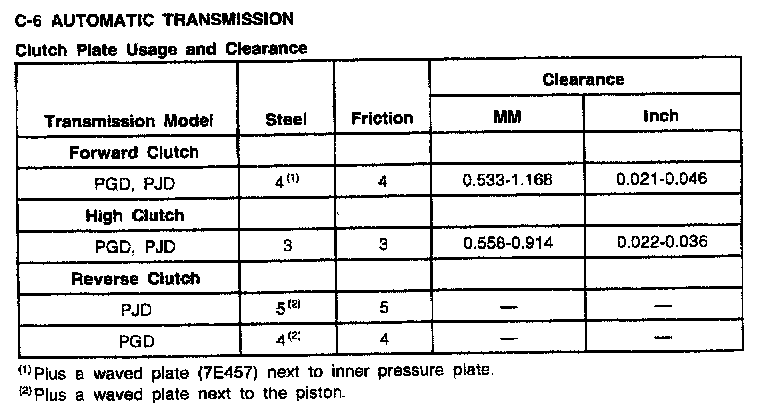 C6 3-spd A/T, Clutch Plate Usage/Clearances: