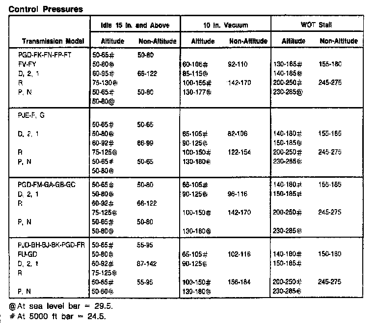 C6 3-spd A/T, Control Pressures: