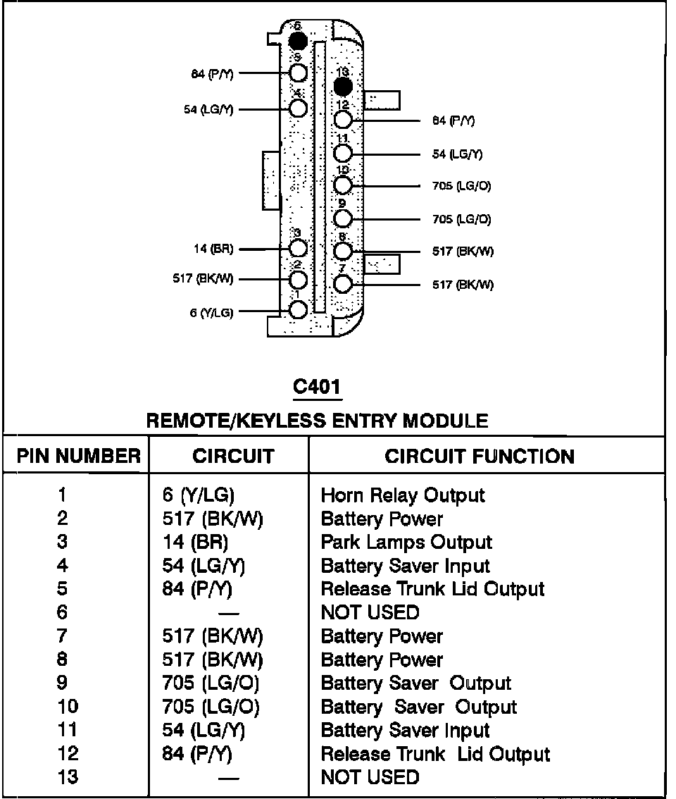 Keyless Entry Module: Diagrams