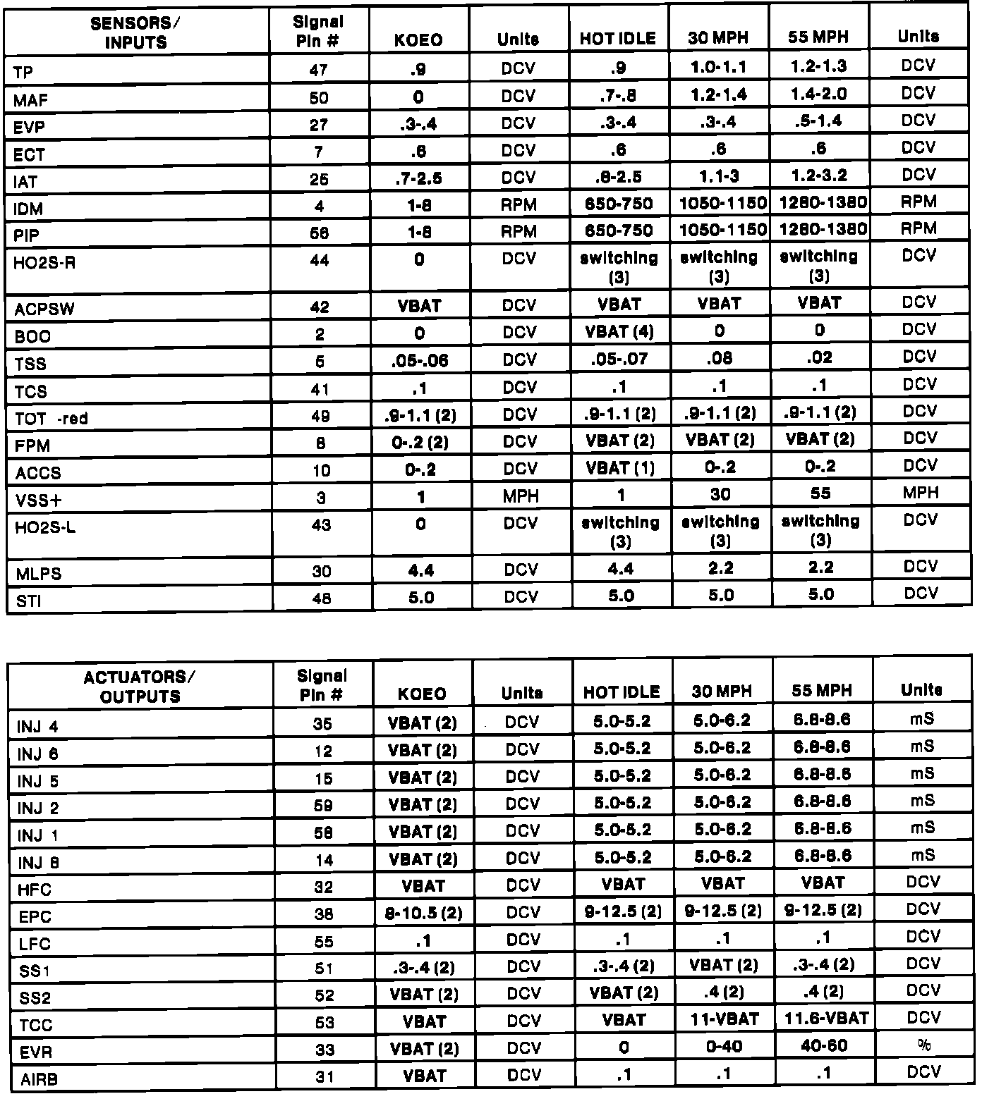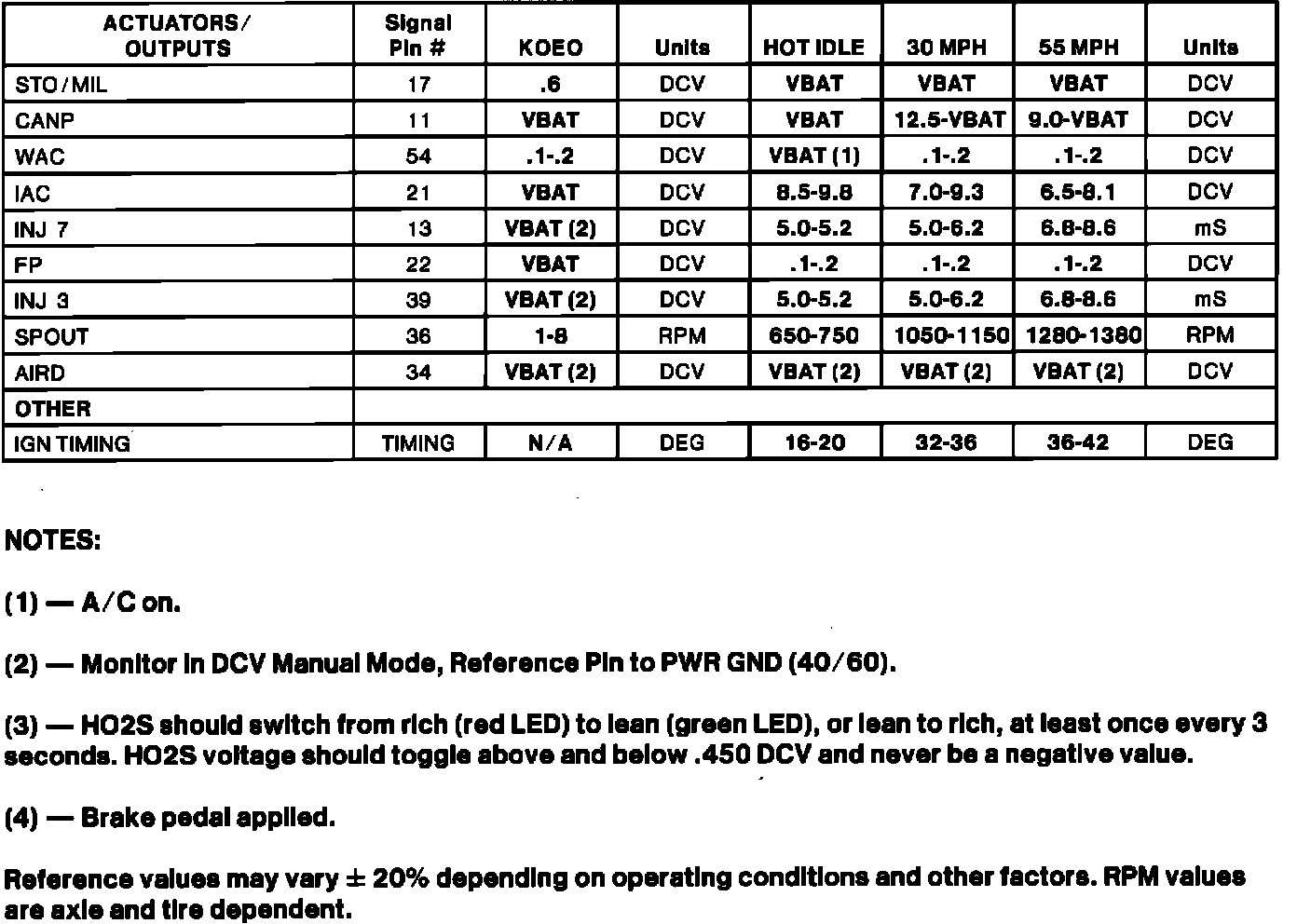 Some Electronic Engine Controls (EEC) devices such as Intake Air Temperature (IAT), Engine Coolant Temperature (ECT) are temperature dependent and values may vary. Other Values such as Idle Air Control (IAC) and Injector Pulsewidth (INJ) are calibration dependent and may vary also.