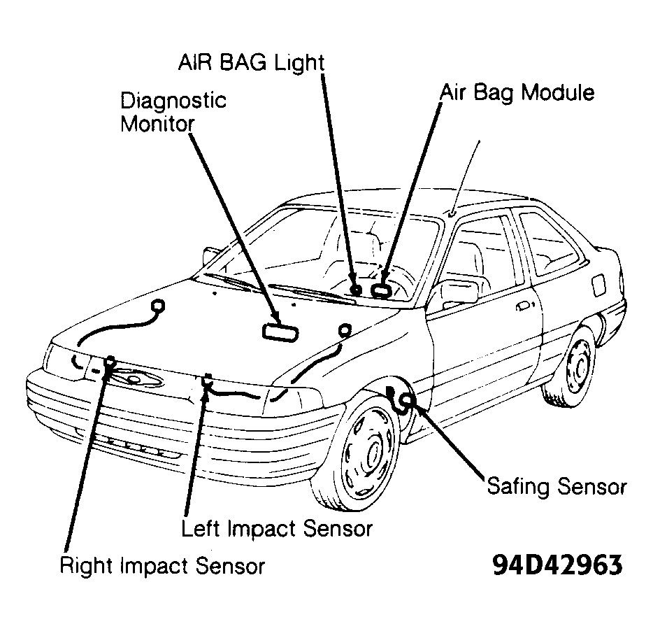 During a front-end collision, the impact sensor(s) internal balls are thrown forward. The balls complete an electrical circuit and ignite the inflator to deploy air bag. At least 2 sensors, one safing sensor and one front impact sensor, must activate simultaneously to inflate air bag.