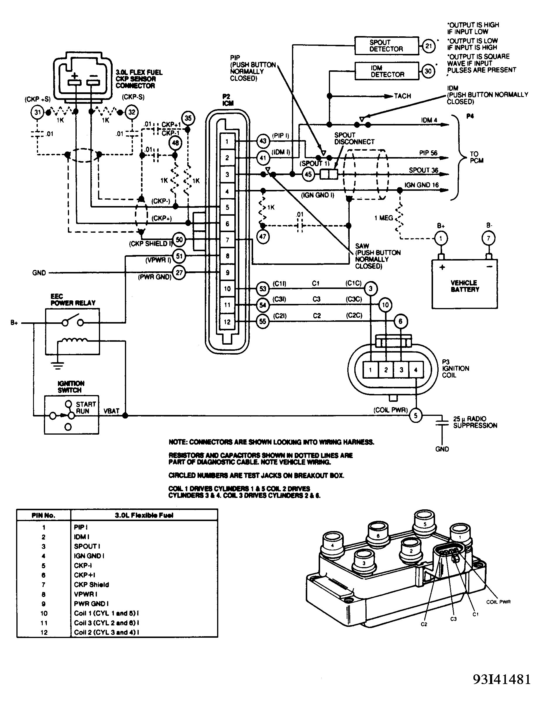 Start all diagnostics with QUICK TEST. Proceed to TESTS W/CODES - EEC-IV (3.0L)