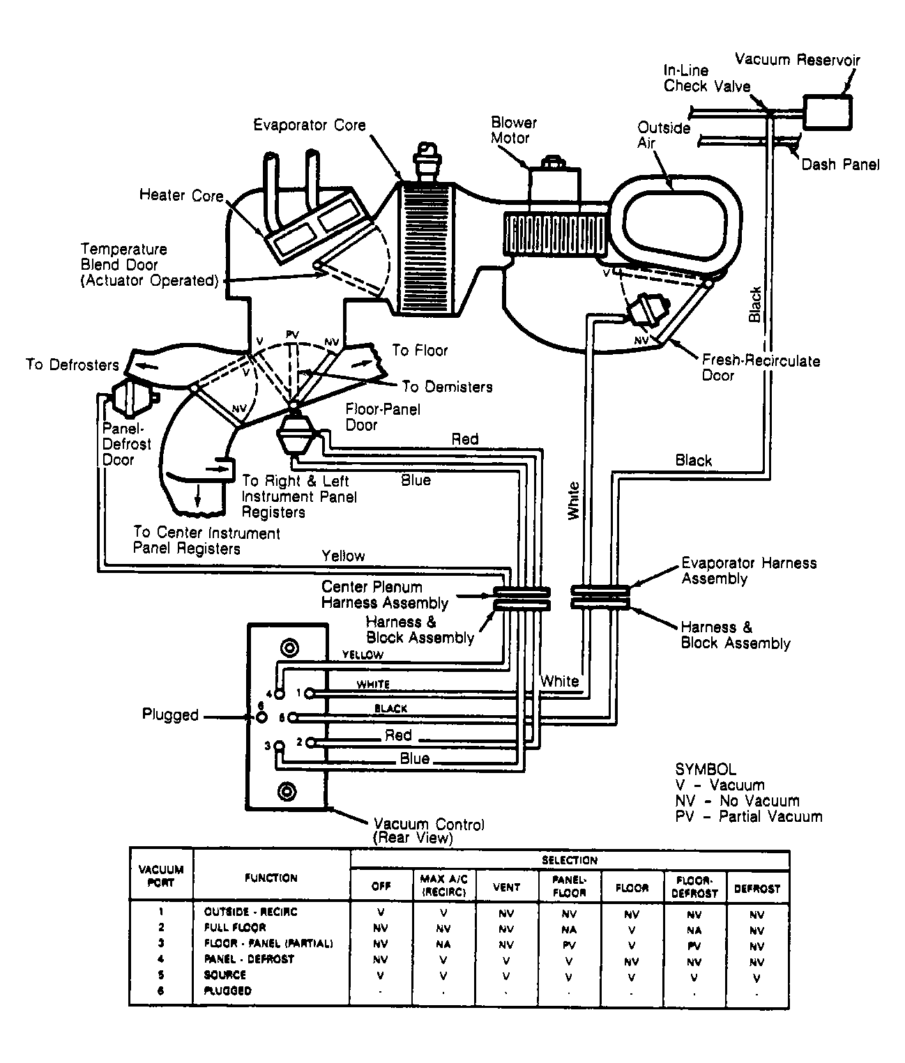 - If vacuum system works normally at idle, but goes to defrost during acceleration, a small leak exists in vacuum system. Turn engine off. Using a vacuum gauge, check for vacuum loss while selectively blocking off vacuum hoses. Check in-line check valve.
