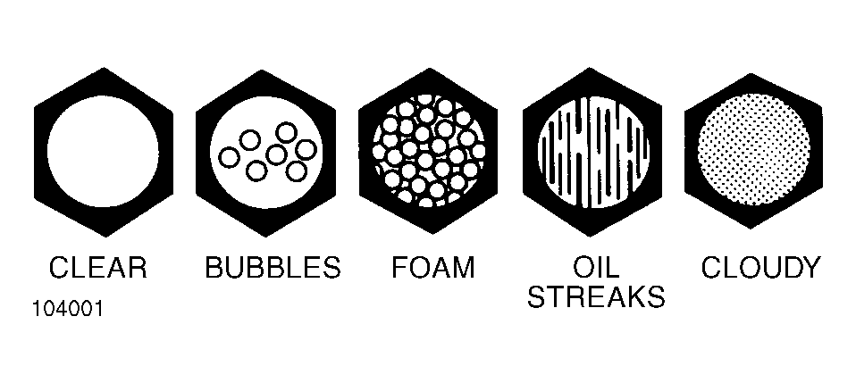 Not all systems use a sight glass. If used, a sight glass may be mounted in receiver-drier (accumulator) or in discharge line. Refrigerant's condition can be visually checked while passing through sight glass. The following are possible conditions of sight glass indicator, which may help in the diagnosis of problems. See Figure.