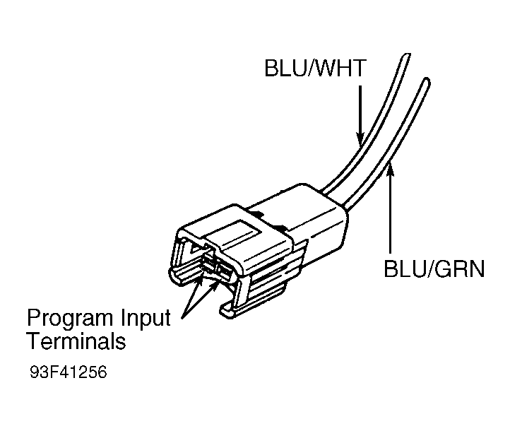 1. Turn ignition to RUN or ACC position. Remove right quarter panel interior trim panel. Remove sub-woofer speaker (if equipped). Locate program connector. Using a jumper wire, momentarily short the terminals of the programming connector located in right rear quarter panel area. See Fig 1. All doors should lock then unlock to confirm programming mode has been entered.