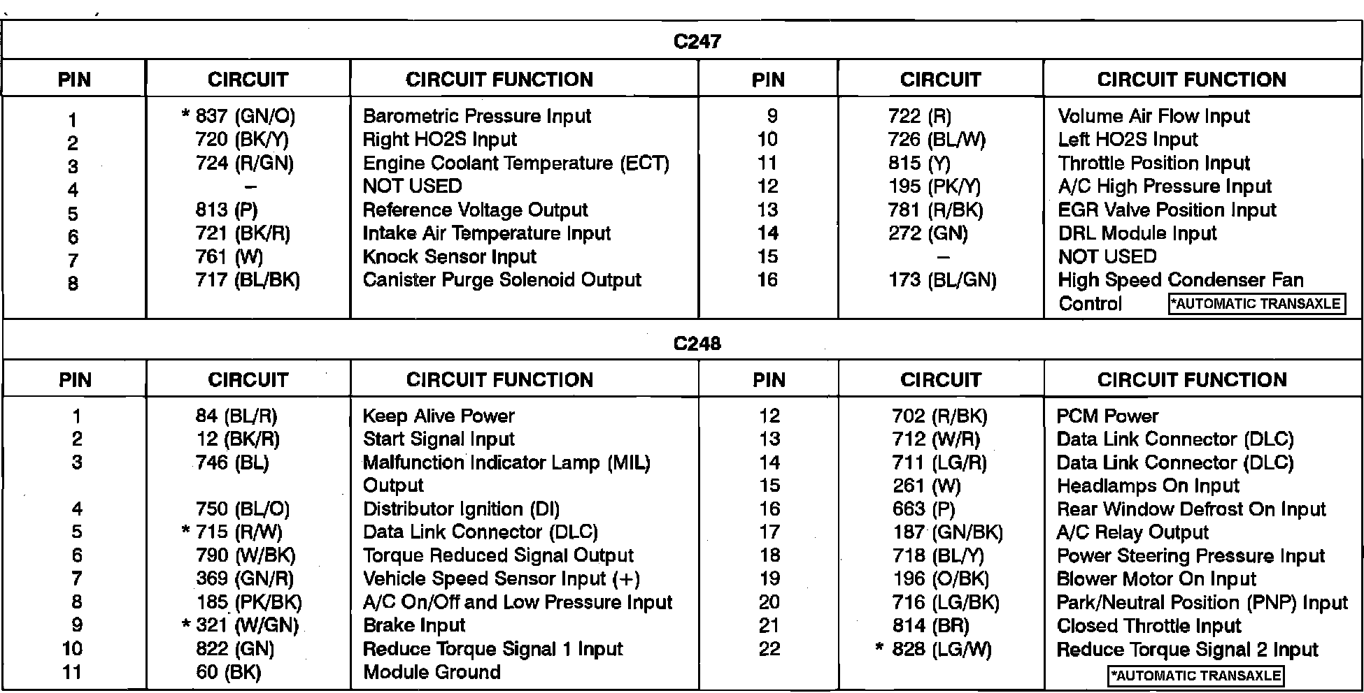 Powertrain Control Module (PCM) Pinout Chart:
