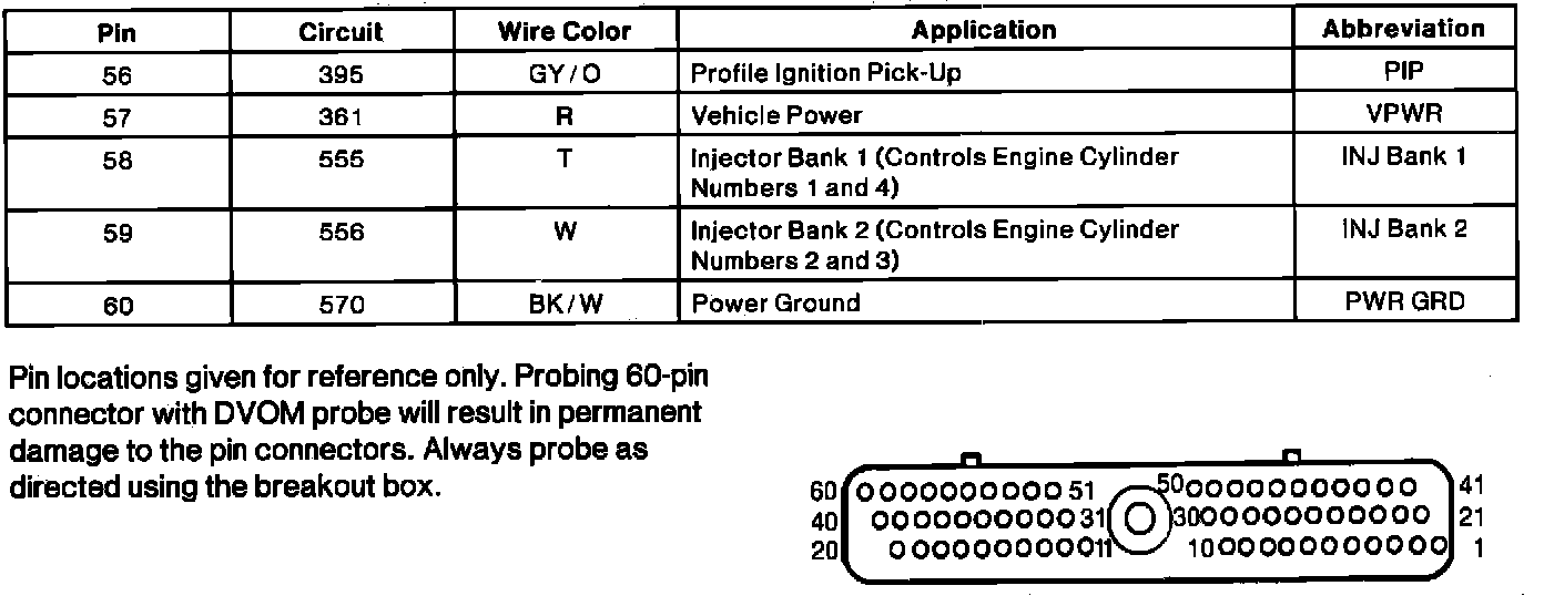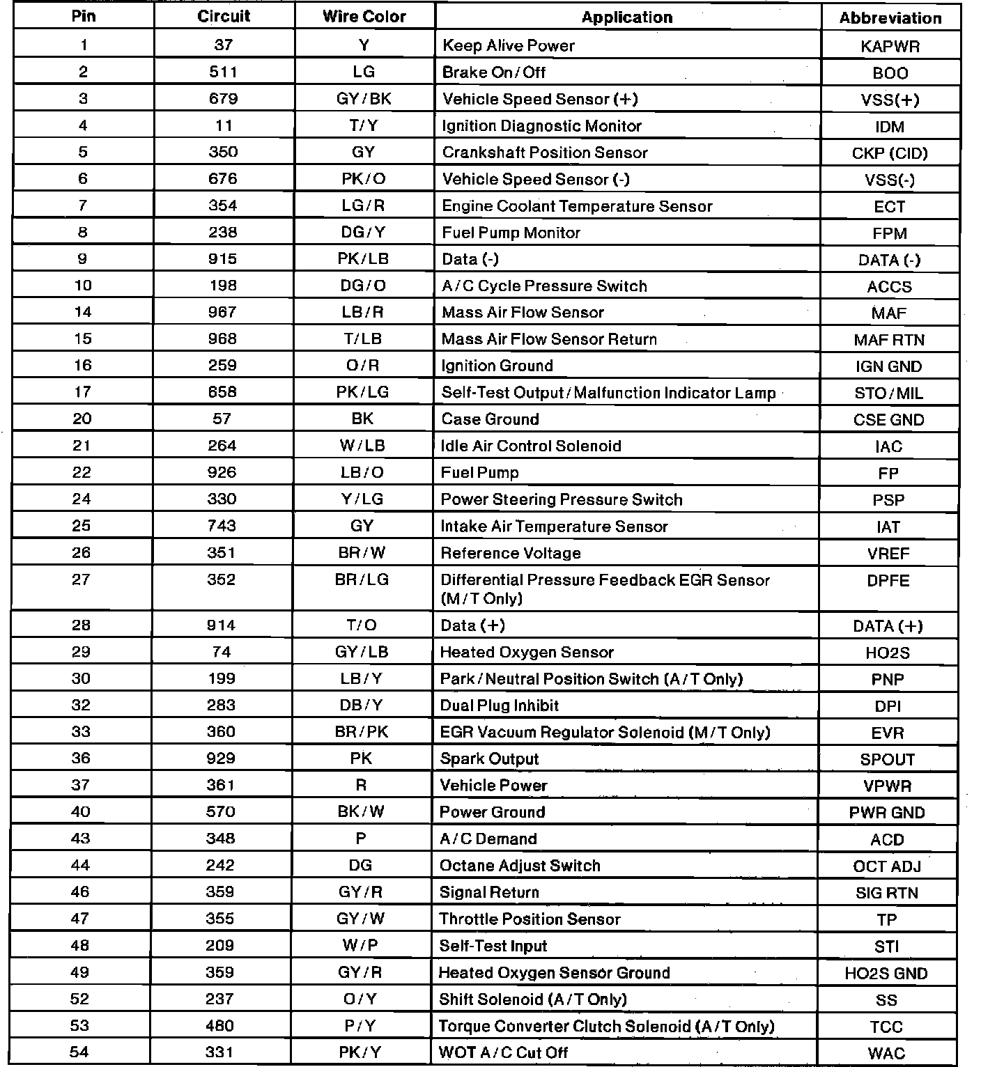 Powertrain Control Module Connector Pin Useage:
