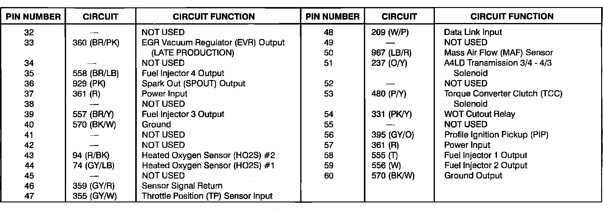 Powertrain Control Module (PCM) Circuit Function:
