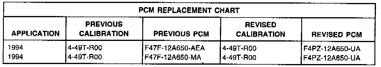 a. Install the correct PCM. Refer to the 1994 Ranger Service Manual for procedure.