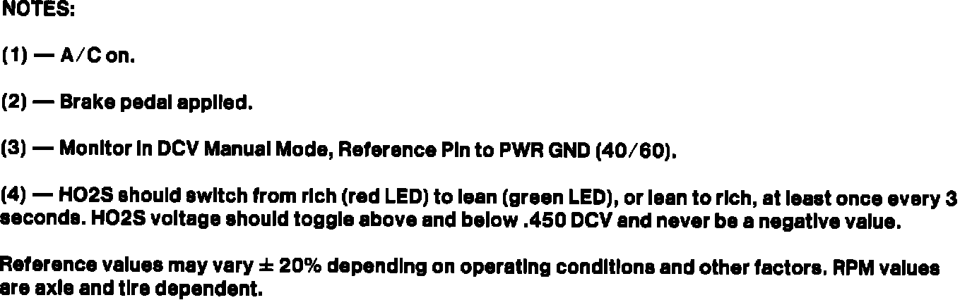 - Reference values are based on engine at normal operating temperature.