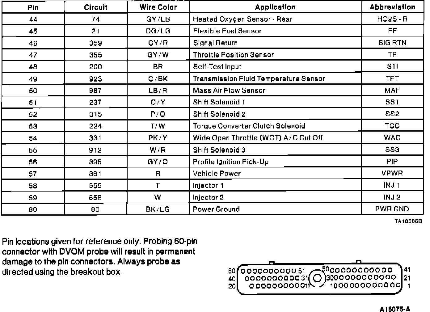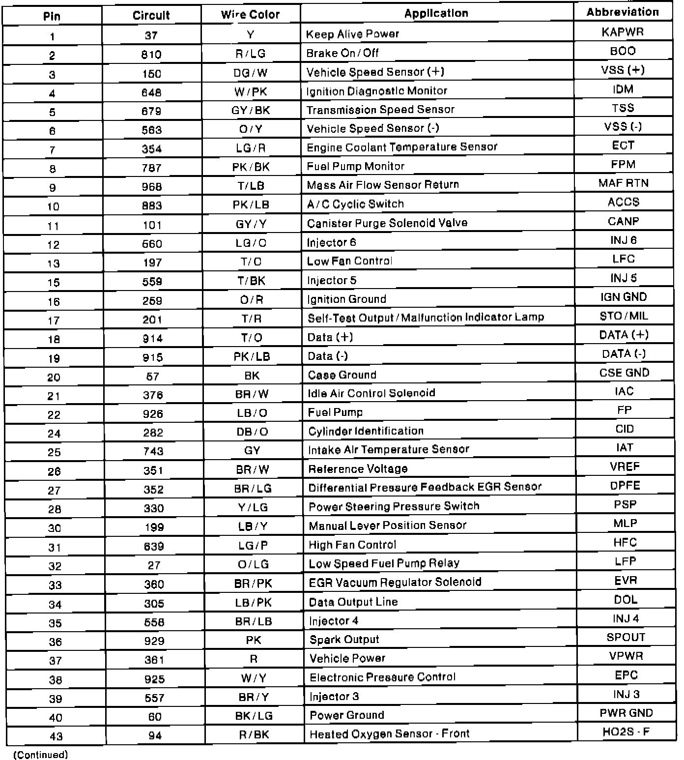 Powertrain Control Module (PCM) Connector Pin Usage: