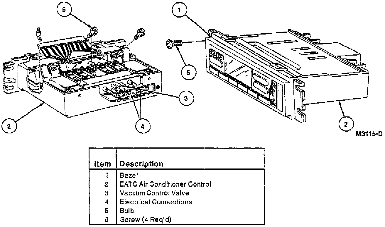 4. Remove the four Torx head screws retaining the control head. Pull the control head away from the instrument panel into a position that provides access to the rear connectors.