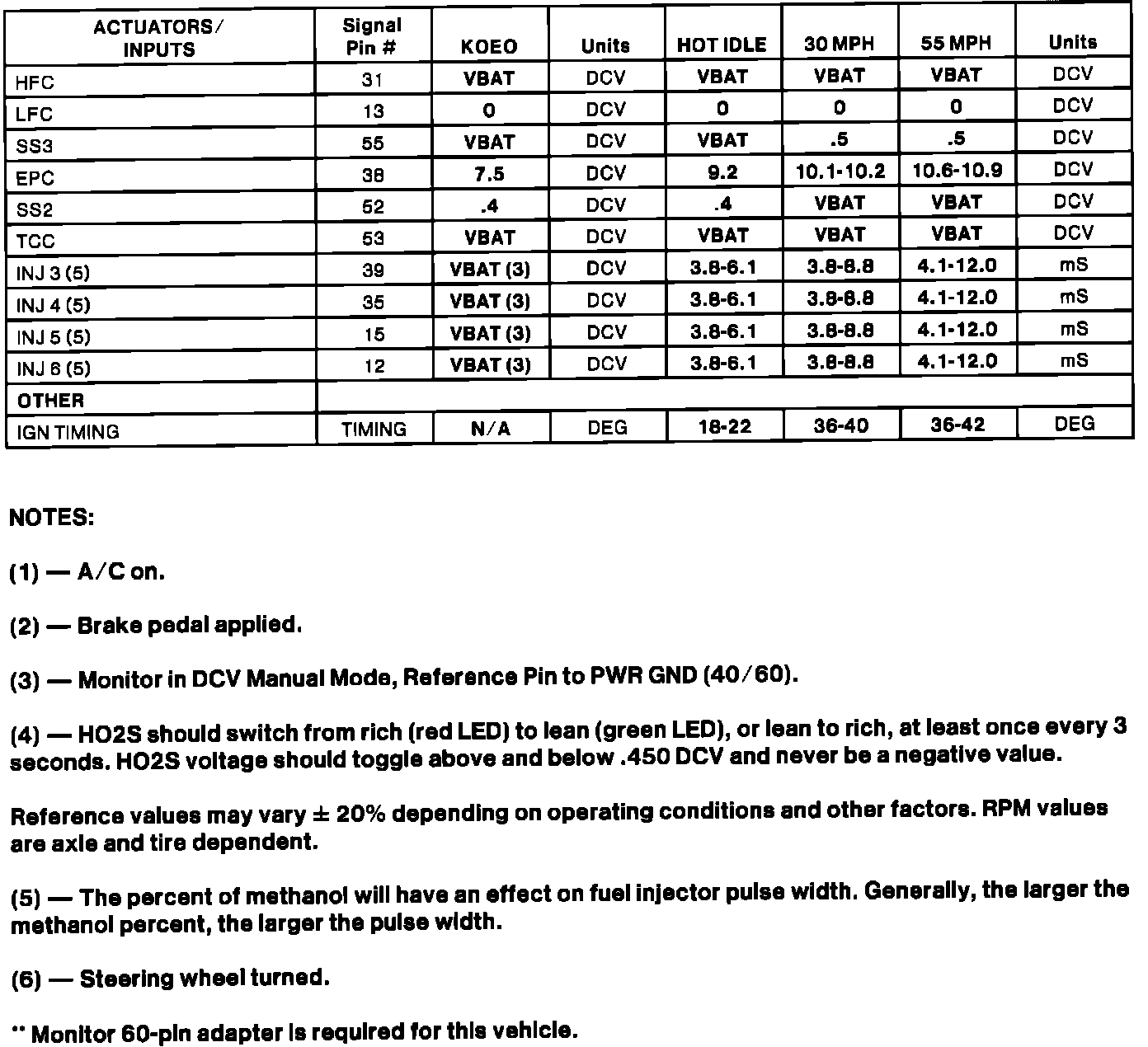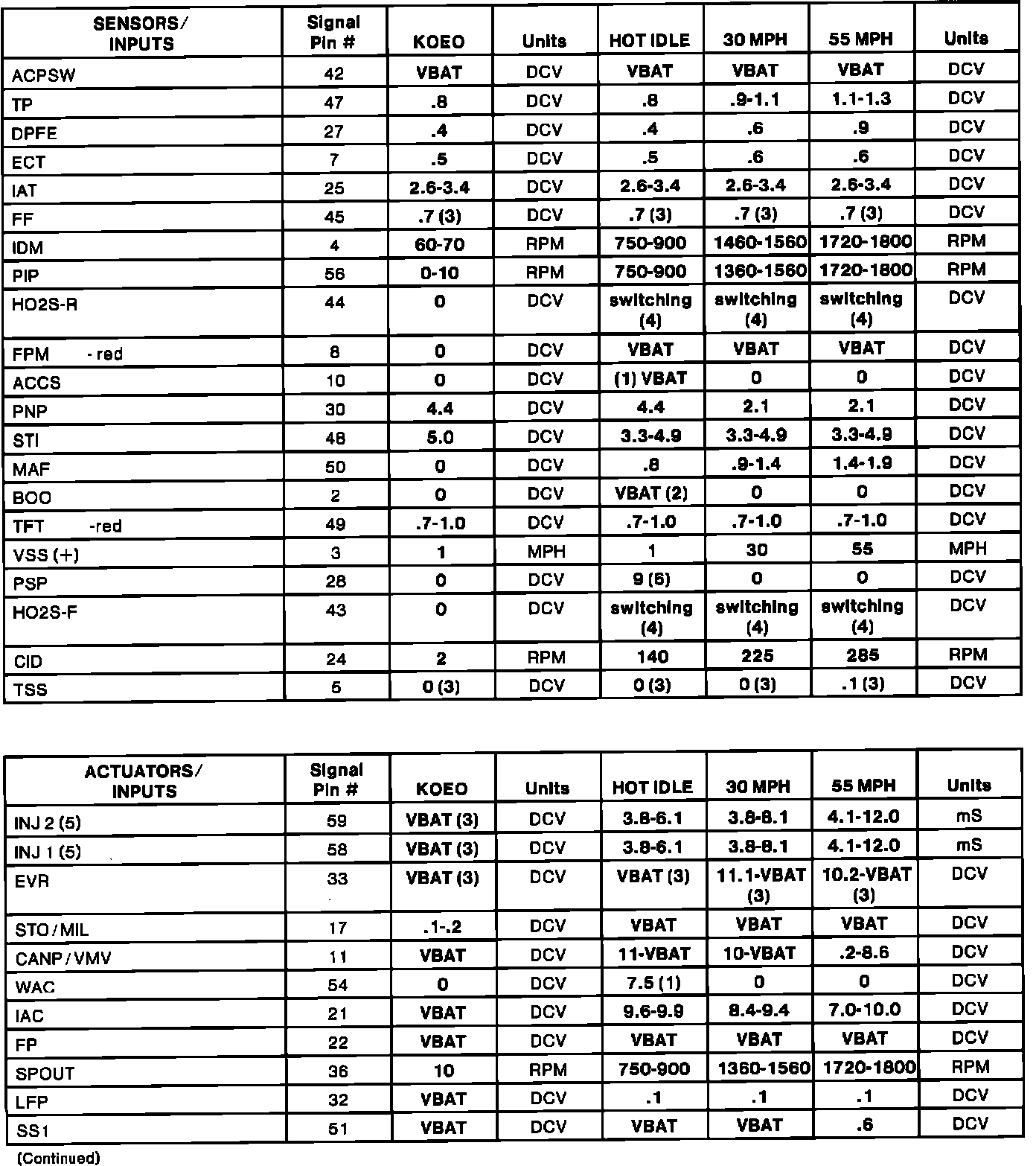 Home >> Ford >> 1994 >> Taurus V6-182 3.0L FF >> Repair and Diagnosis >> Powertrain Management >> Computers and Control Systems >> Testing and Inspection >> Scan Tool Testing and Procedures >> Typical Diagnostic Reference Values